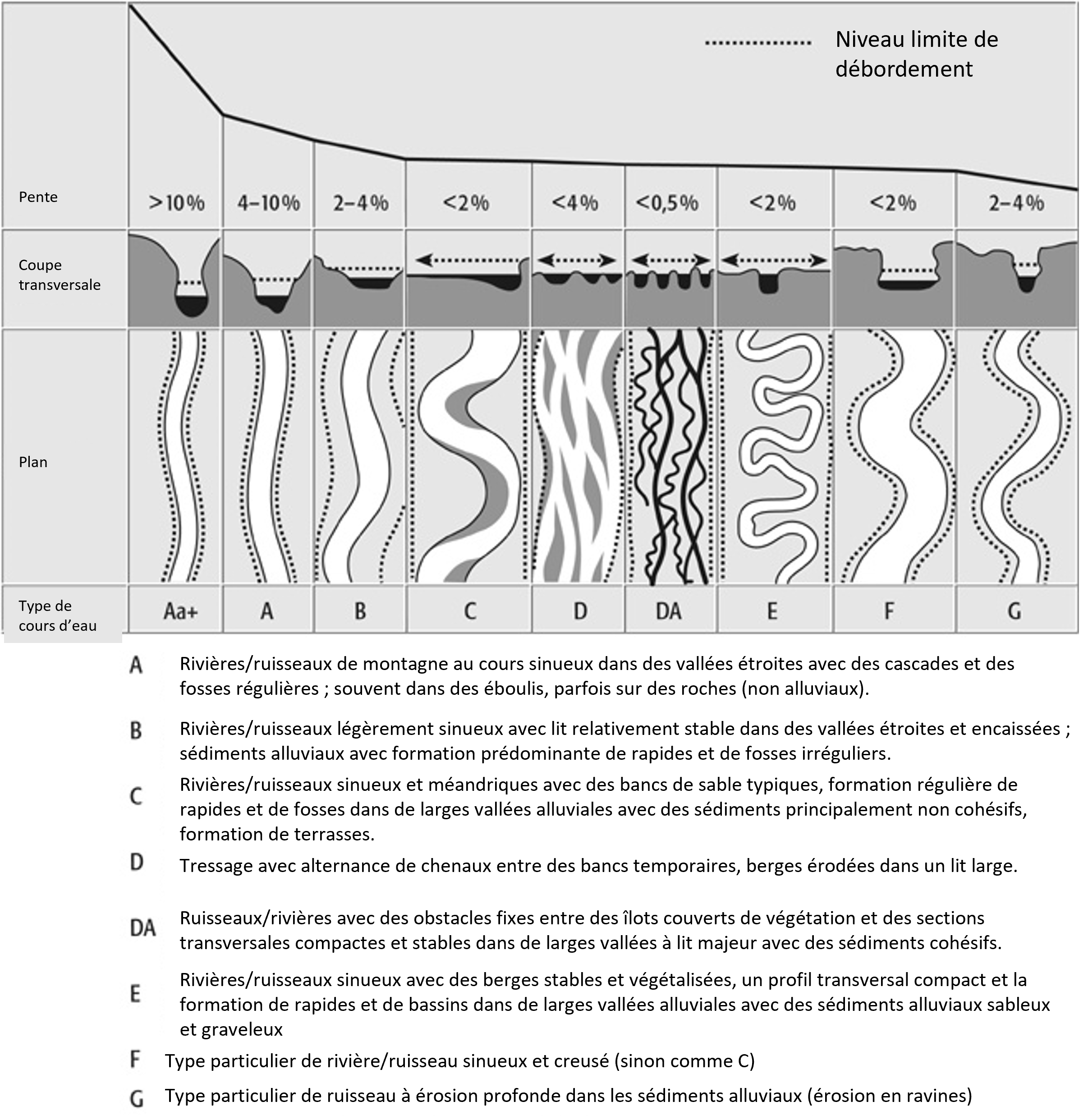 Types morphologiques des cours d’eau (Patt, 2024)