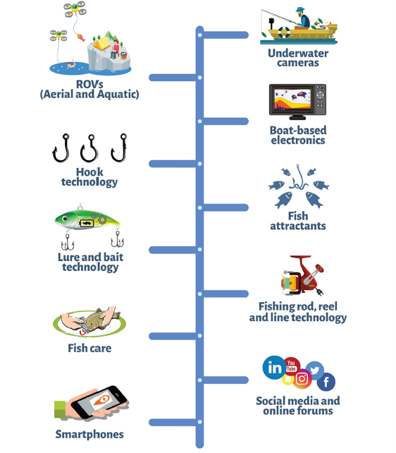 Die Effizienz in der Angelfischerei hat sich im Laufe der Zeit durch zahlreiche Fortschritte und Innovationen im Bereich Ruten, Rollen, Köder, Elektronik und Zubehör stetig verbessert. Für kaum eine Fischereimethode lässt sich noch eine zeitgemässe Ausrüstung zusammenstellen, die ganz ohne Hightech-Materialien der neusten Generation auskommt. Weltweit ist die Angelfischerei ein milliardenschweres Geschäft, in dem Hersteller mit aufwändigem Marketing ihre Produkte bewerben und über die sozialen Medien verbreiten sich die neusten Trends, Techniken und Technologien in kürzester Zeit.