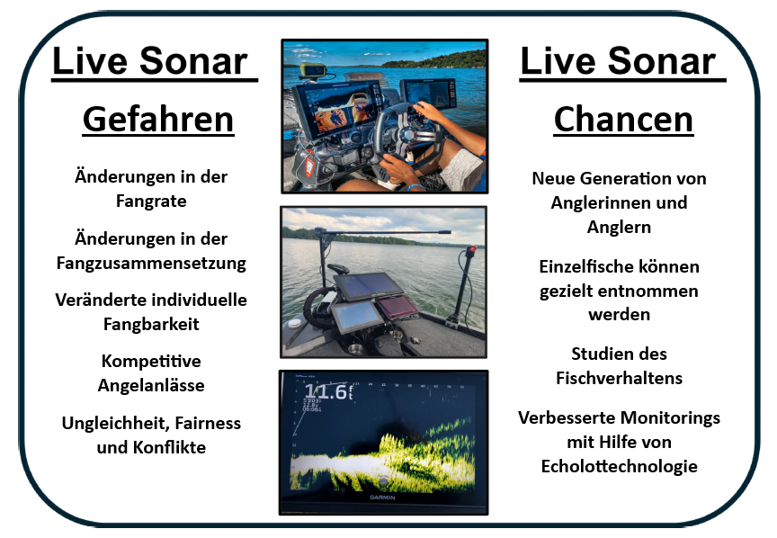 Insbesondere bei stark befischten Gewässern oder empfindlichen Fischarten könnte eine unregulierte Nutzung von Live-Sonar langfristig negative Auswirkungen auf die Bestände haben. Um diese Risiken zu vermeiden, könnte es notwendig werden, spezifische Regeln für den Einsatz solcher Technologien zu entwickeln. So wurde an der Müritz in Mecklenburg-Vorpommer in Deutschland zum Beispiel das aktive Suchen von grossen Fischen eingeschränkt. Die Live-Technologie darf dort nur auf verankerten Booten oder von treibenden Booten mit Driftsack eingesetzt werden. Auch Verbote werden immer mehr ein Thema. In der Schweiz ist der Einsatz der Live-Sonare aktuell auf dem Vierwaldstättersee sowie auf dem Sarnersee verboten. Auf dem Vierwaldstättersee führte das Verbote zu einer Beschwerde der Nutzer, welche aber vor Bundesgericht abgewiesen wurde. Weiter gilt neu ebenfalls ein Verbot auf dem Luganersee und dem Lago Maggiore.
